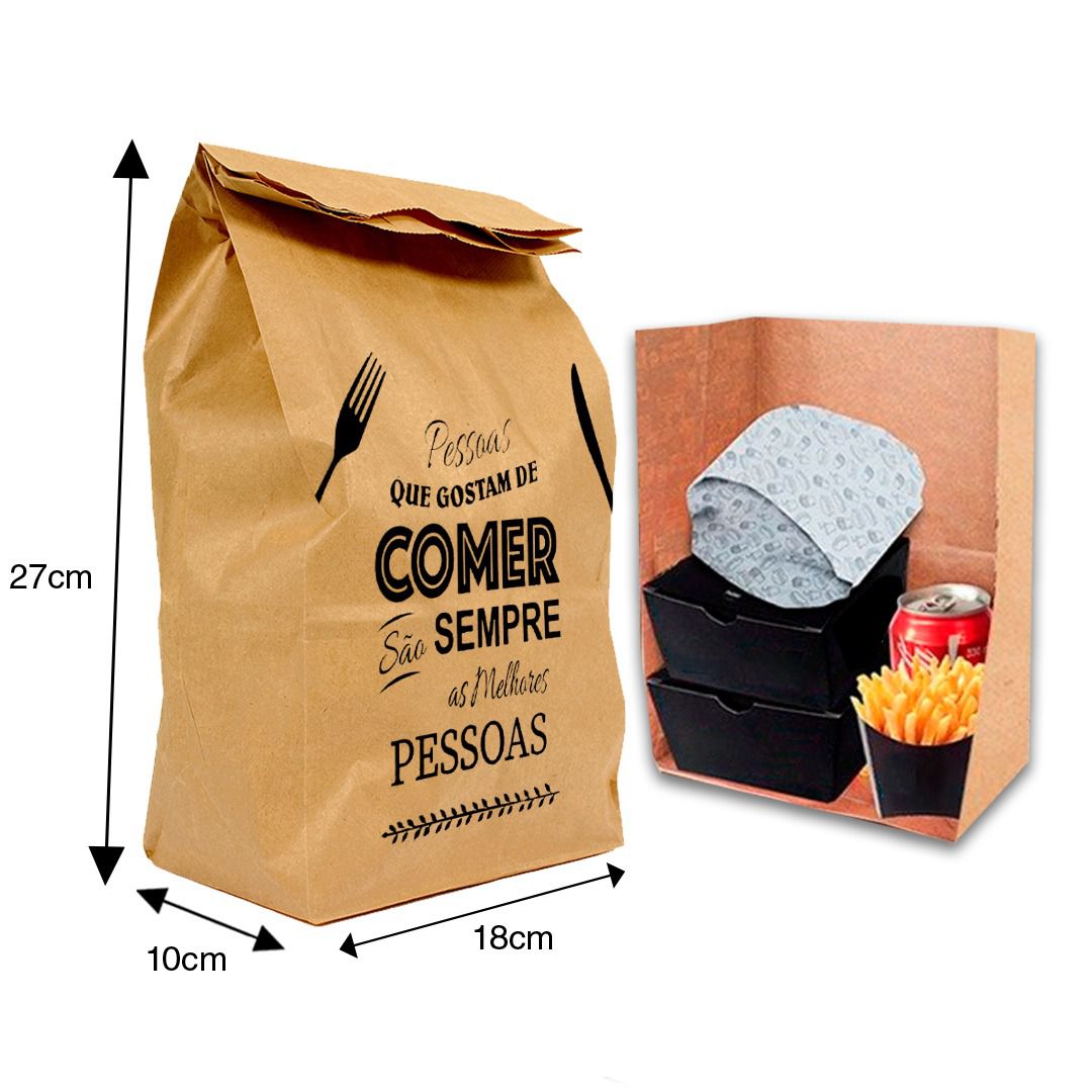 Tamanho de saco para DELIVERY ( 18cm largura x 10cm sanfona x 27cm altura )