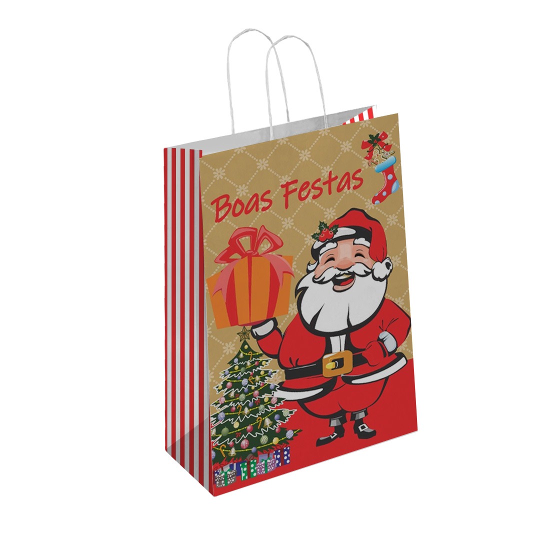 Com estampa natalina moderna e encantadora, ela é perfeita para embalar presentes, lembranças corporativas, kits de panetone, vinhos ou qualquer mimo especial. Além de transmitir carinho, reforça o compromisso com a sustentabilidade em uma das épocas mais festivas do ano.
